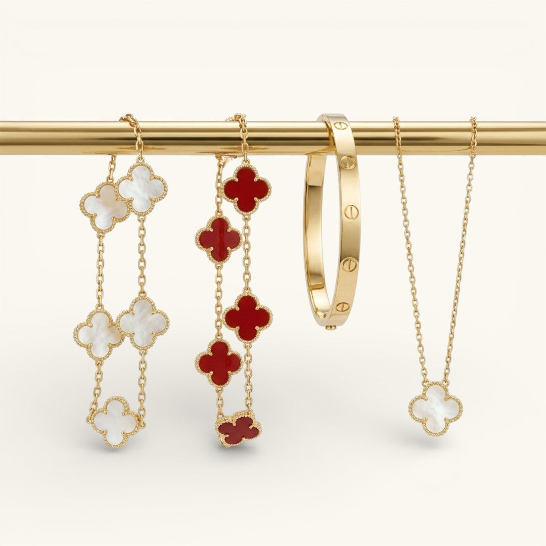 18k gold plating on surgical steel. Engineered to stay brilliant, always.