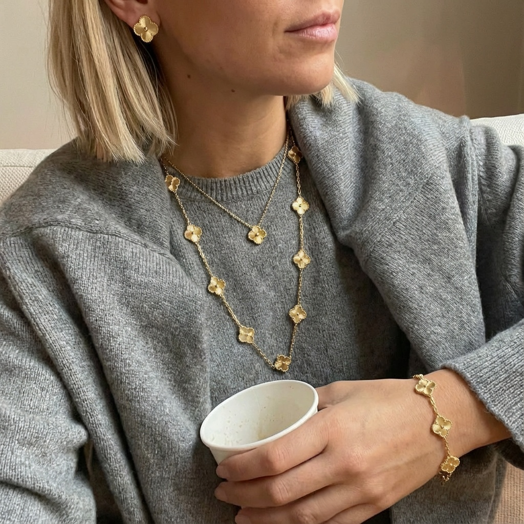 ✨ An additional necklace with a statement clover design, perfect for layering