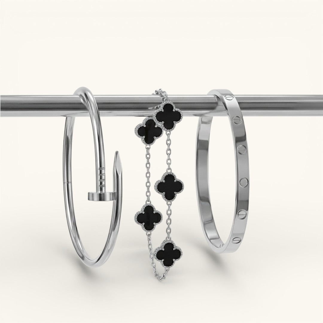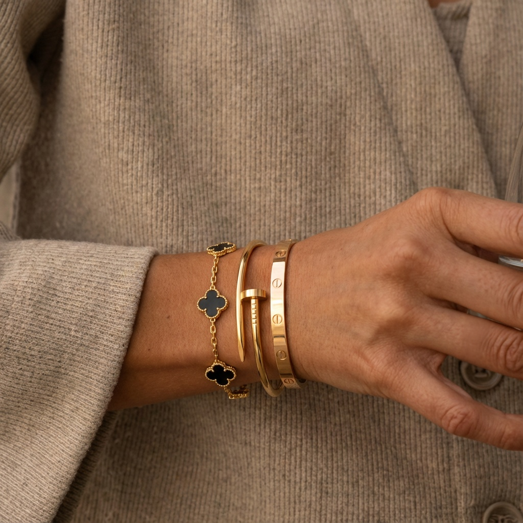 • Elegance Nail Bracelet: A bold and modern statement piece with a sleek nail-inspired design (one size).