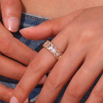 Glimmer with Sanna. An exquisite piece crafted from resilient 18K Gold accented by dazzling diamond simulants. A ring of perpetuating beauty and superior quality, tailored for those who admire the eternal glamour of a diamond's gleam.