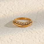 • Ethically sourced Stainless Steel-Plated 18k Gold  AAAAA Diamond Simulants.