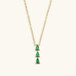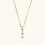Discover the Alana, a stunning piece crafted from waterproof 18K Gold. This necklace features a pendant adorned with three graceful, teardrop-shaped Diamond Simulants, offering an enduring touch of sophistication and charm.