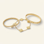 • Trinity & Clover Bracelet: A delicate and adjustable bracelet (16+5 cm) with charming details, available in gold or silver.